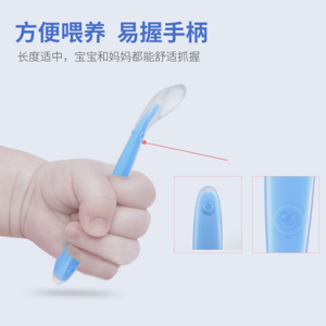 7、柔軟的硅膠小軟勺專為嬰兒設計,幫助寶寶適應從奶瓶到勺子的喂養(yǎng)轉(zhuǎn)變,無毒無味,不含化學物質(zhì),耐高溫煮沸,耐老化,不起粘性。產(chǎn)品硅膠部分可能吸收食物顏色后變色但不影響使用性能,適合剛學習進食的嬰兒使用