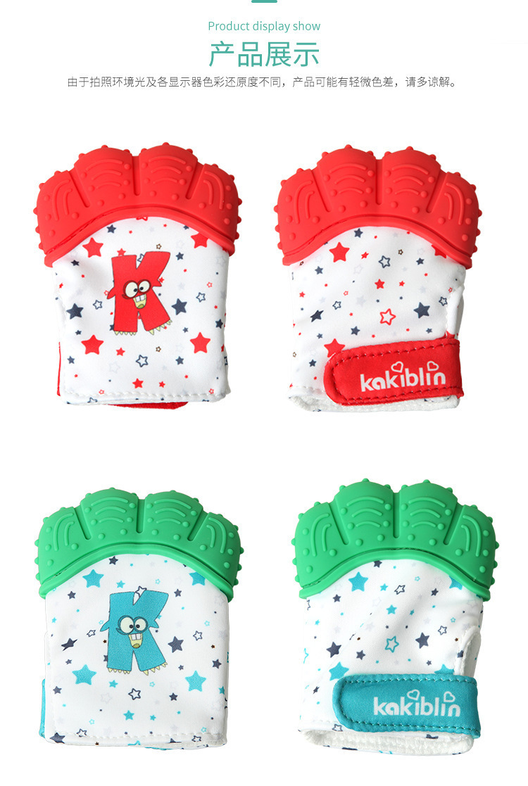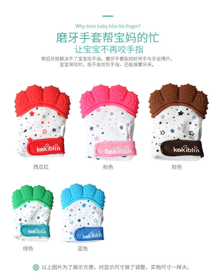 產(chǎn)品用途:牙膠手套可以更好的將手和牙齒隔開,寶寶啃咬時,既不會咬到手指,還可以按摩牙床。