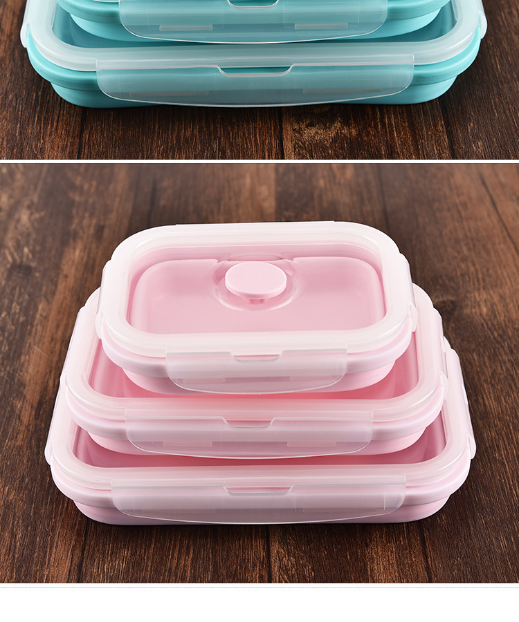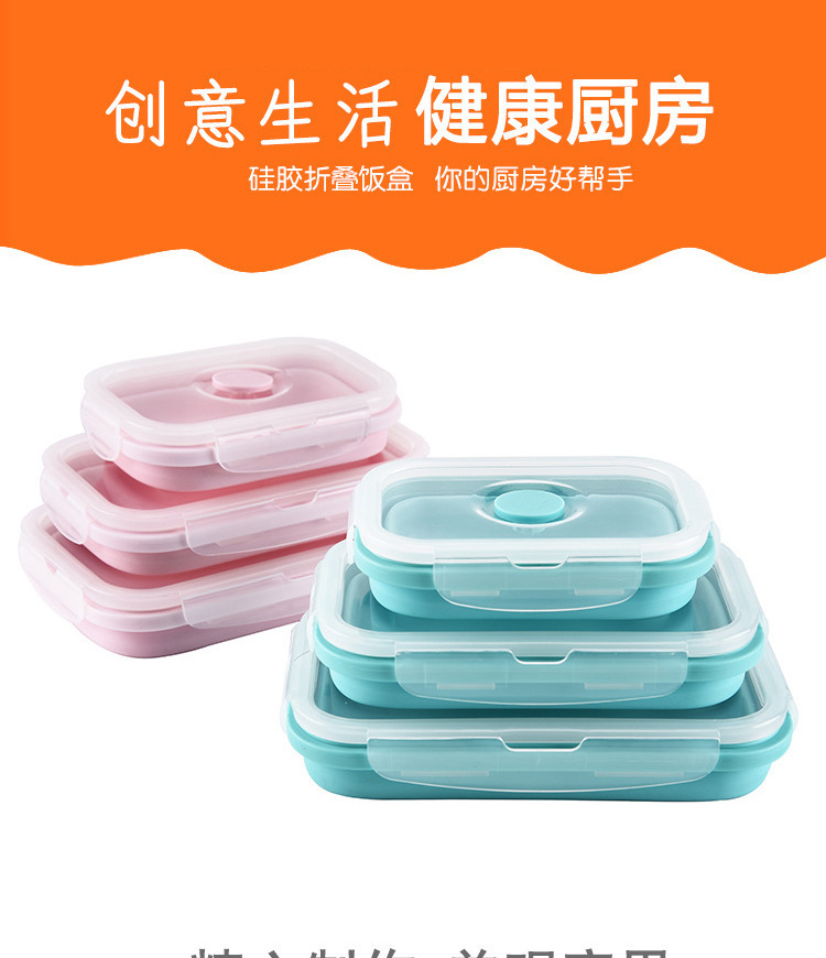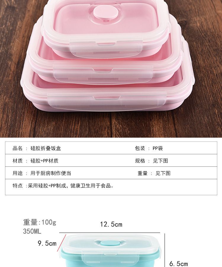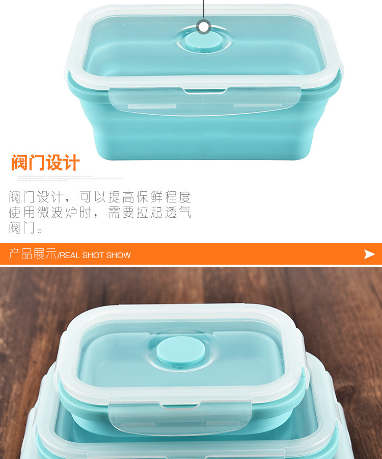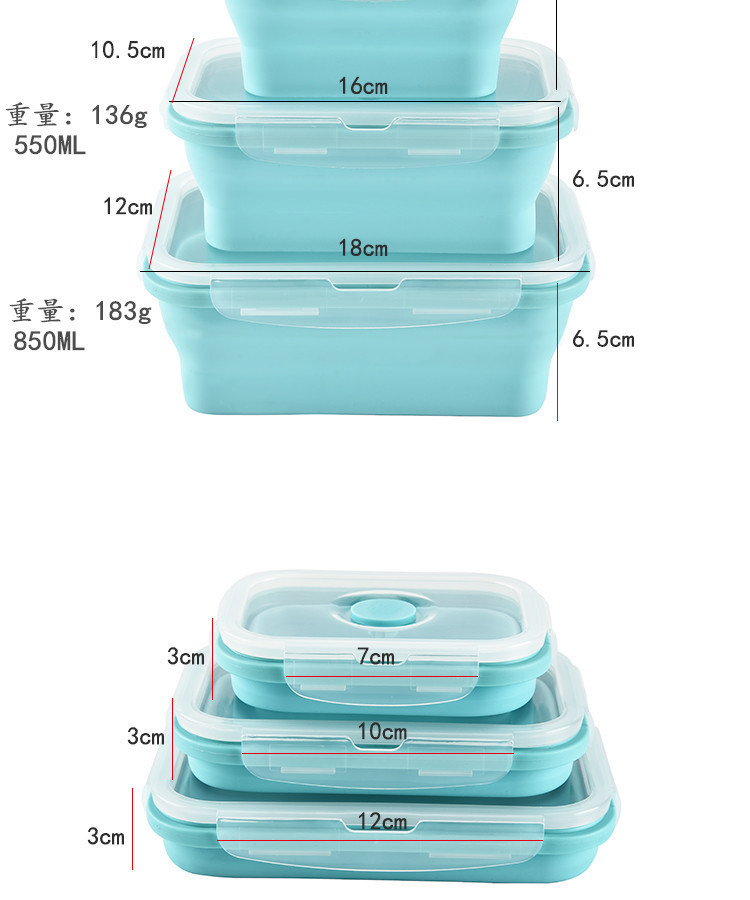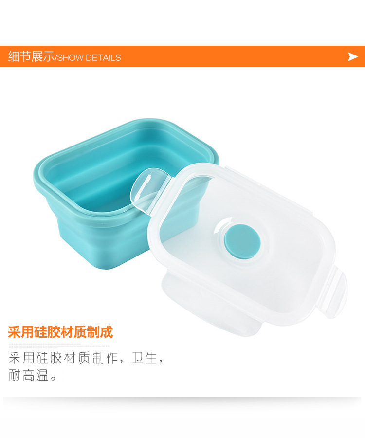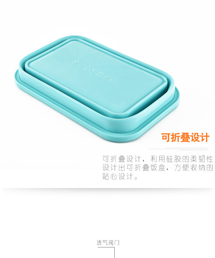 2、可折疊設計,利用硅膠的柔韌特性設計出可以折疊的飯盒,方便收納的貼心設計