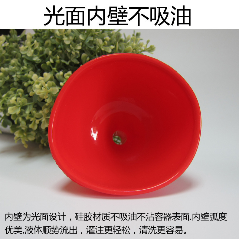 3、內壁為光面設計,硅膠材質不吸油不沾容器表面,內壁弧度優美,液體順勢流出,灌注更輕松,清洗更容易