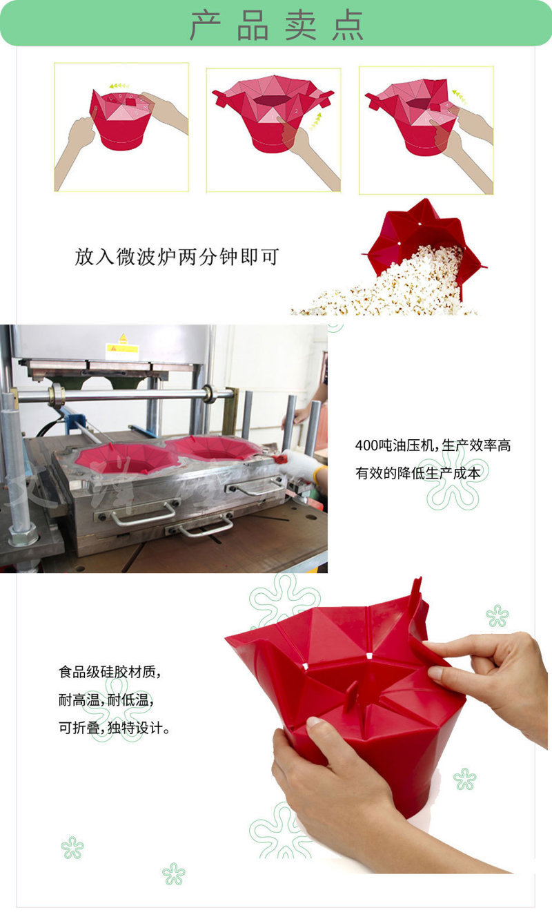 產(chǎn)品用途:適用于微波爐、冰箱,可重復(fù)使用的家用爆米花桶。