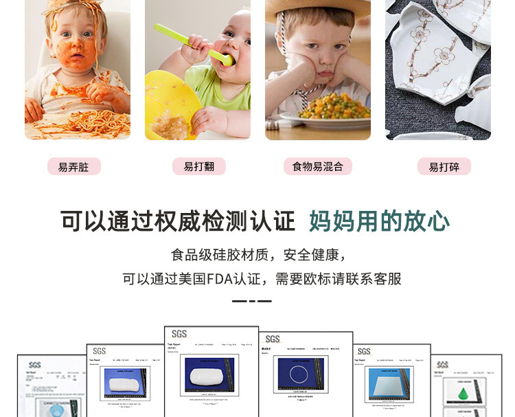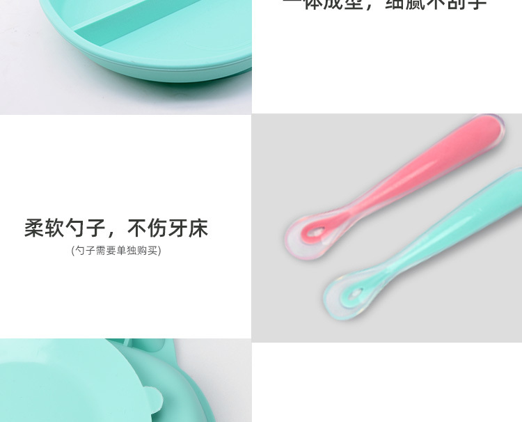 3、觸感舒適,易握防滑,柔軟硅膠材質,防滑防燙設計,寶寶吃飯更安全