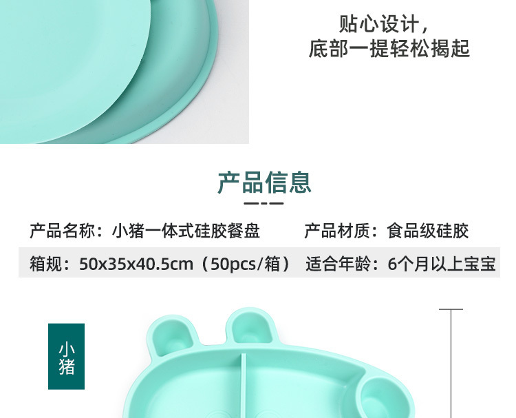 產品名稱:小豬硅膠兒童餐盤 新模食品級環保無毒無味卡通可愛吸盤寶寶餐具